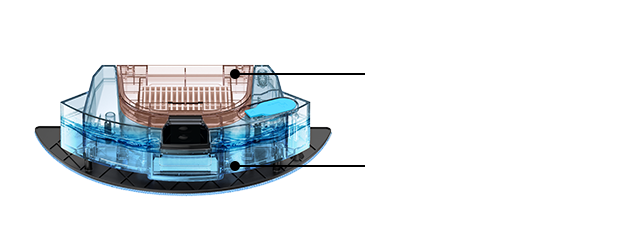 2-in-1 dustbin and water tank, efficient cleaning, less hassle. Adjust water volume for different floor types.